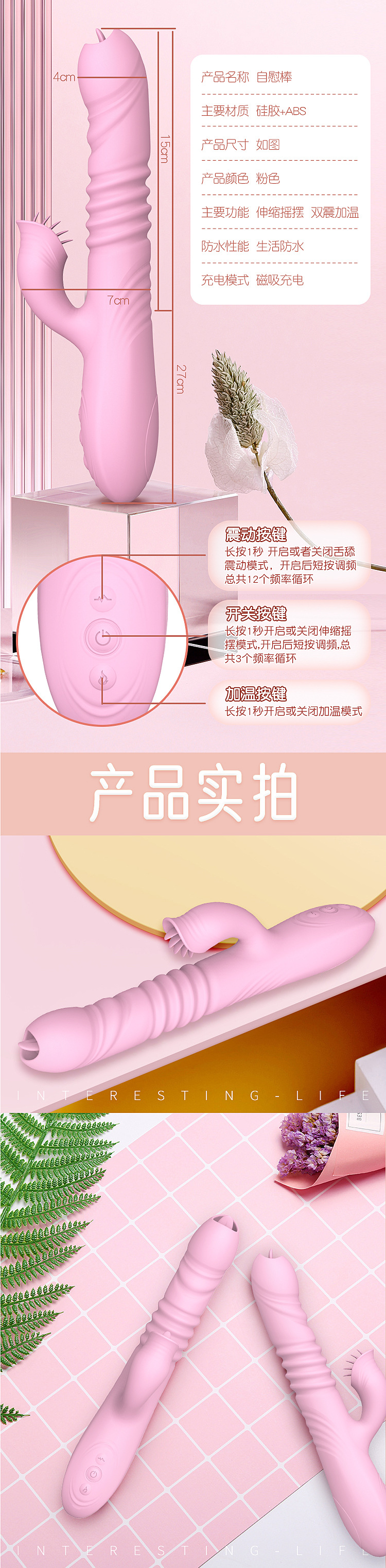 仙女蜜舌震动棒女用伸缩加温舌舔震动自慰器成人情趣用品