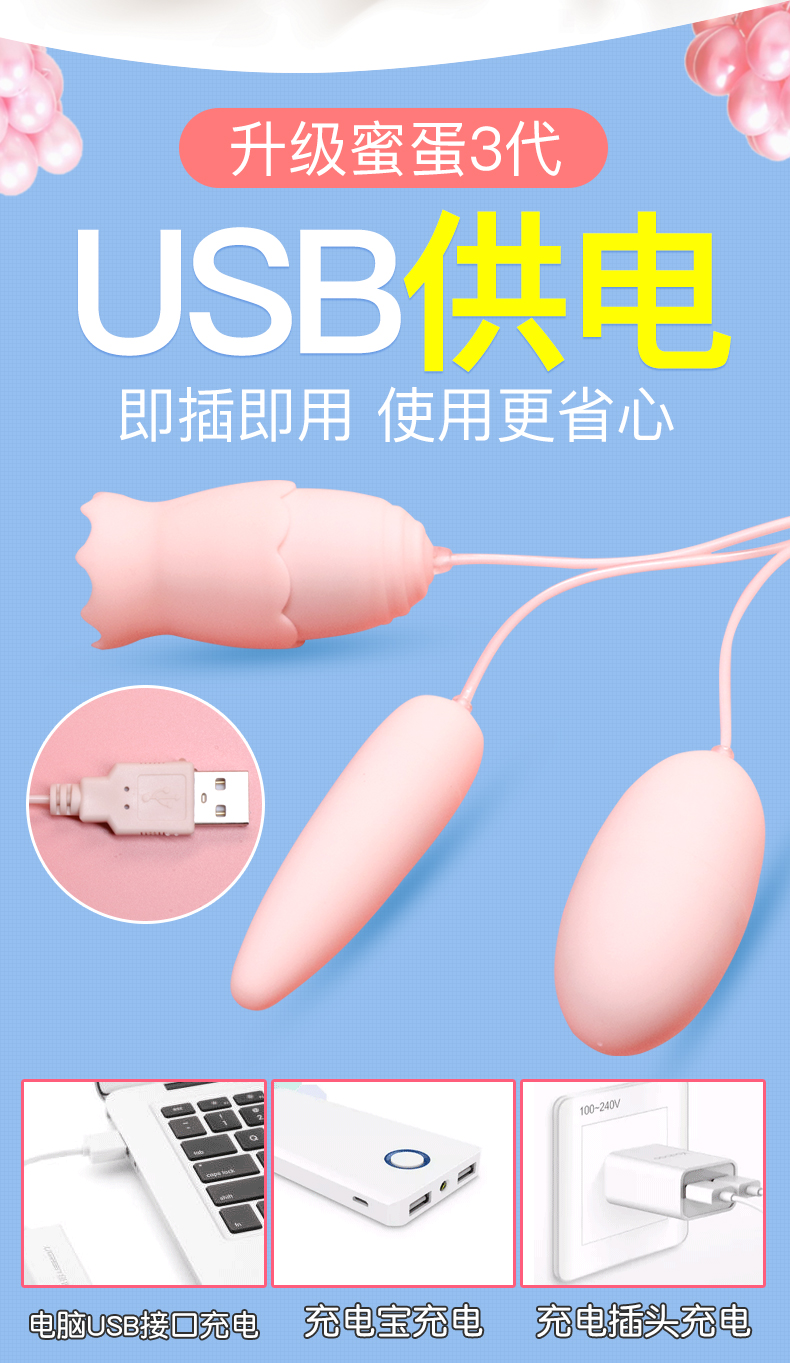 蜜蛋usb变频双跳蛋充电静音震动按摩器女用自慰器情趣性用品